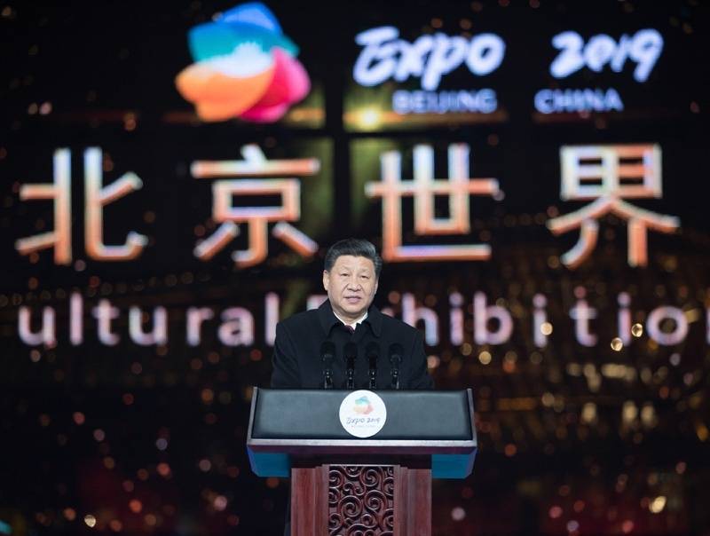 2019年4月28日,國家主席習近平在北京延慶出席2019年中國北京世界園藝博覽會開幕式,並發表題為《共謀綠色生活,共建美麗家園》的重要講話。新華社記者 王曄 攝