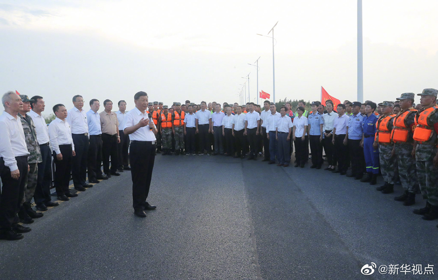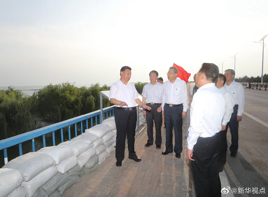 習近平總書記19日下午在安徽省合肥市考察調研。他在肥東縣十八聯圩生態濕地蓄洪區巢湖大堤羅家疃段,察看巢湖水勢水情,看望慰問防汛抗洪一線人員、先進典型代表和參加抗洪搶險的解放軍、武警部隊官兵。當天下午,習近平在合肥還參觀了安徽創新館和渡江戰役紀念館,瞭解安徽省科技創新和新興產業發展情況,重温革命歷史、緬懷革命先烈。(文字記者:張曉松 攝影記者:鞠鵬 王曄 燕雁)