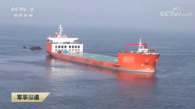 參與本次直升機投送演練的民用半潛船,是上海振華重工的某型半潛船,該艦船體中部的甲板設置有3個直升機停機坪,可以搭載並保障武直-10、武直-19和直-8等現役直升機進行渡海作戰。