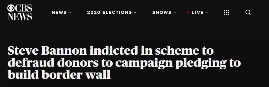 他們被指通過“我們自己築牆”(We Build the Wall)活動欺詐了數十萬捐款者後,班農隨後被捕,並將在被捕當天(20日)出庭。