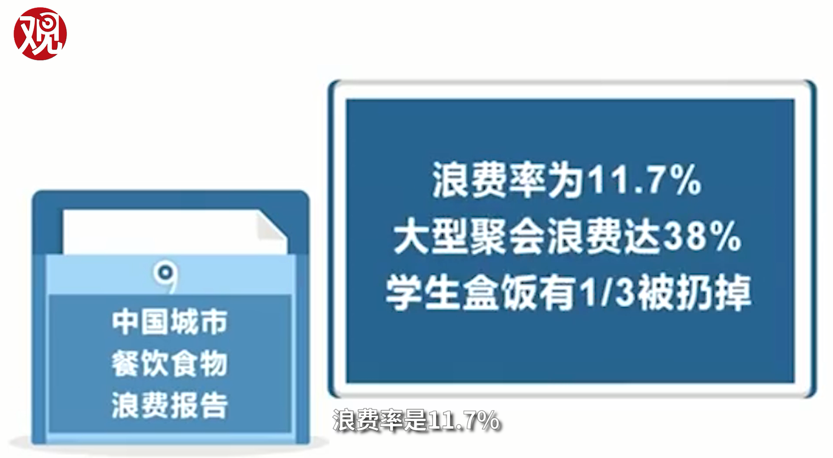 但是糧食到底是怎麼浪費的,主要原因是大胃王的吃播嗎?恐怕未必。這一點,新聞數據裏其實已經講清楚了,中國餐飲業人均食物浪費量,每人每餐93克,浪費率是11.7%。但是,大型聚會浪費達38%,學生盒飯有1/3被扔掉。也就是説,和平均浪費率相比,真正的大頭,在大型聚會和學生盒飯。