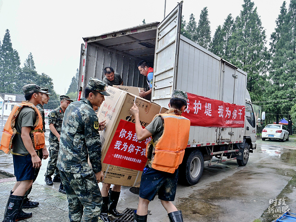 △7月27日,合肥某抗洪部隊駐地收到當地捐贈的除濕烘乾機,“你為我護堤,我為你乾衣”。