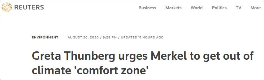 據路透社等外媒報道,當天他們討論了氣候危機和應對全球變暖的舉措等問題。通貝里更是“反客為主”,呼籲默克爾“要有足夠的勇氣考慮長遠的問題”。