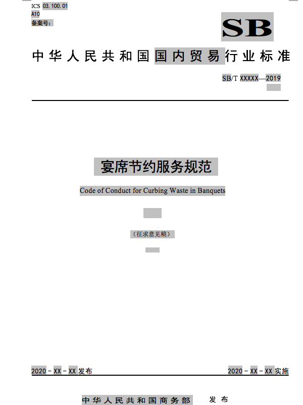 8月21日晚,為貫徹落實習近平總書記關於堅決制止餐飲浪費行為的重要指示精神,在徵求相關專家意見建議的基礎上,商務部服貿司和中國烹飪協會起草了《宴席節約服務規範》,現公開徵求意見。