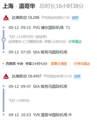 一個典型的聯程航班,從上海飛往温哥華需要在西雅圖進行中轉