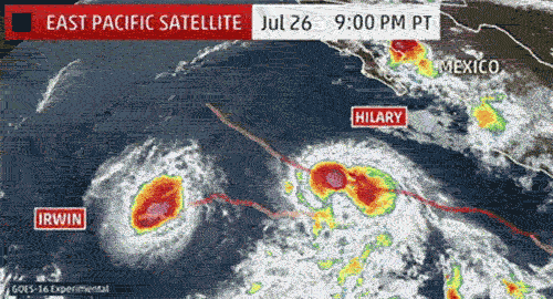 2017年,太平洋上的“希拉里”、“歐文”出現“雙颶風”效應