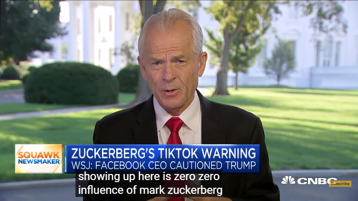 白宮、臉書發言人隨即否認爆料內容。而一天後(24日),抹黑中國上癮的白宮顧問納瓦羅專門上電視替扎克伯格撇清,稱有關報道“毫無可信度”,扎克伯格對於白宮封殺TikTok的決定“影響力為零”。