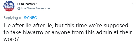 有人直言:“(納瓦羅)一次又一次地撒謊,可這一次我們就應該拿他或者本屆美國政府中任何一個人的話當真嗎?”
