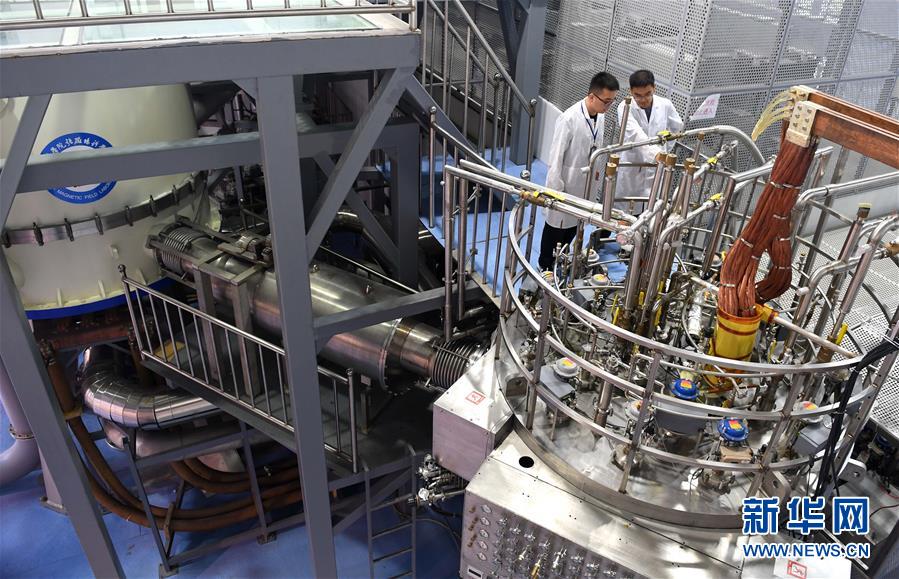 工作人員在中科院合肥物質科學研究院查看混合磁體裝置(2017年9月27日攝)。新華社記者 劉軍喜 攝