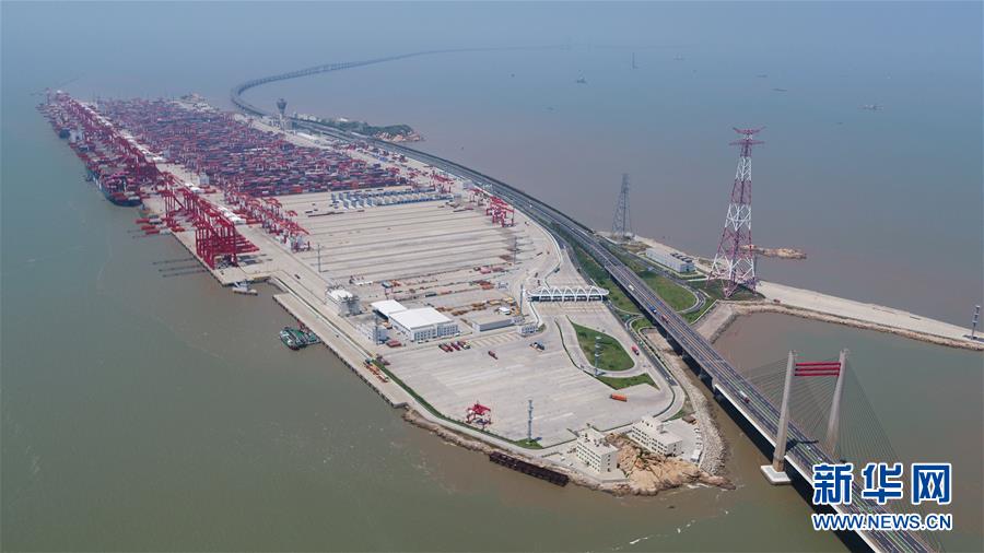 上海洋山港集裝箱碼頭(8月17日攝,無人機照片)。新華社記者 丁汀 攝