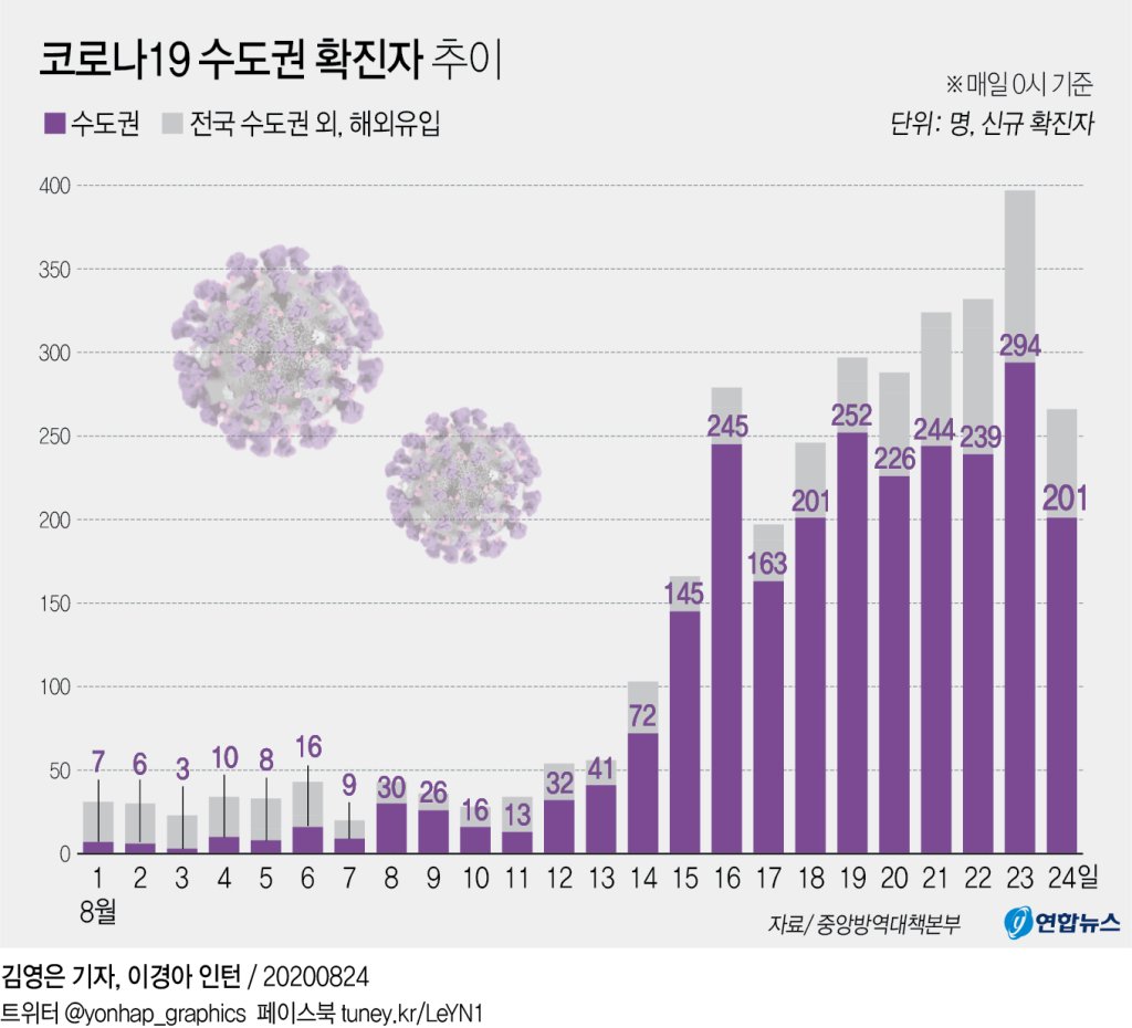 韓國8月以來首都圈日新增病例統計 圖片來源:韓聯社