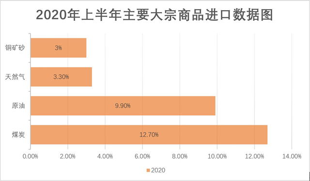 中國經濟公佈的2020年上半年經濟數據,最新數據顯示:出口自4月以來連續三個月正增長,進口6月實現正增長。煤炭、原油、天然氣、銅礦砂等進口量分別增長12.7%、9.9%、3.3%、3%。