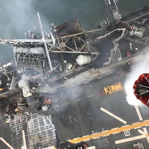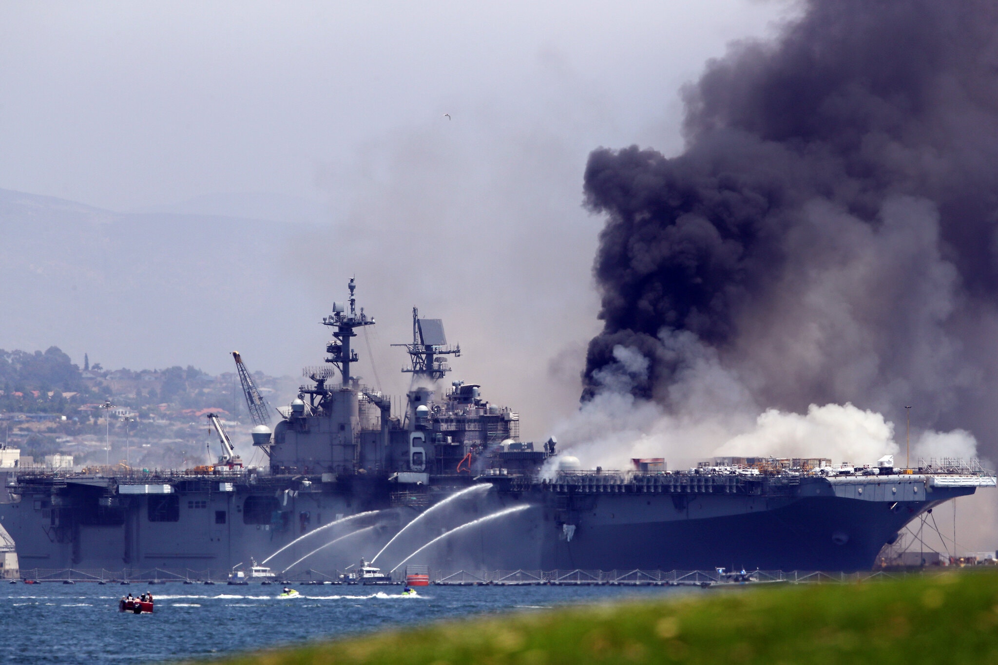 7月12日,“好人理查德”號在聖迭戈軍港內接受維護升級期間突發大火。海軍官員稱,火勢最先出現在陸戰隊員通常停放軍車的區域,隨後快速蔓延。而當時艦上僅有約200名水兵,他們一度被迫棄艦。