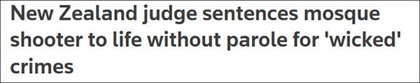 (觀察者網訊)在經過了3天的量刑聽證會後,新西蘭法院最終對2019年3月那起震驚世界的清真寺槍擊案作出了判決。