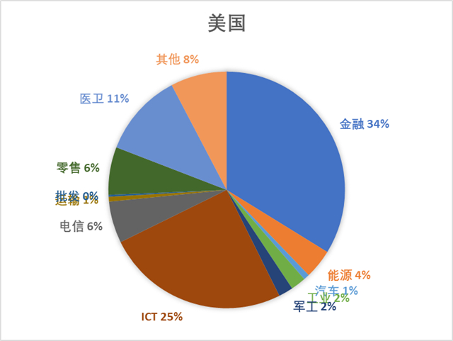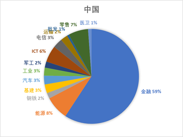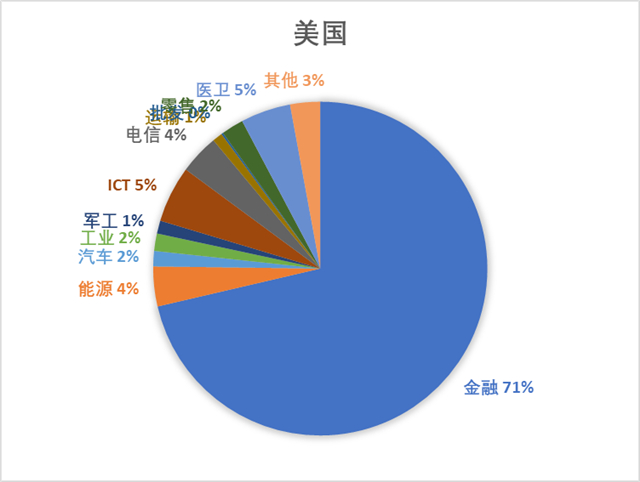 在各產業板塊的營收分佈上,金融對美中都是重頭,但除此之外,就沒有相似之處了。