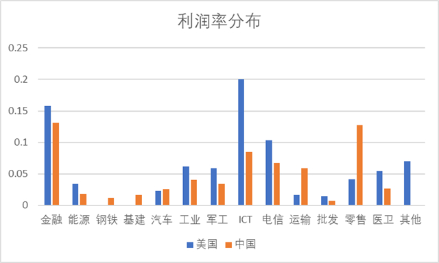 可以看出,美中公司在營收、資產、就業方面都相差不是很大,但中國公司的總利潤只有美國公司的一半左右。