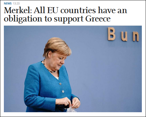 28日,據希臘《每日報》(Kathimerini)、《希臘城市時報》(Greek City Times)等媒體報道稱,原先在土希爭端中保持相對中立的德國總理默克爾,當天呼籲所有歐盟成員國一起支持希臘,並稱“歐盟國家有義務這麼做”。