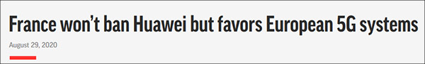 此前,法國在華為5G問題上一直表現出搖擺、反覆的態勢。法國國家網絡安全局(ANSSI)7月6日曾表示不會完全禁止華為參與法國5G網絡建設,但“不鼓勵”法國運營商使用華為設備。