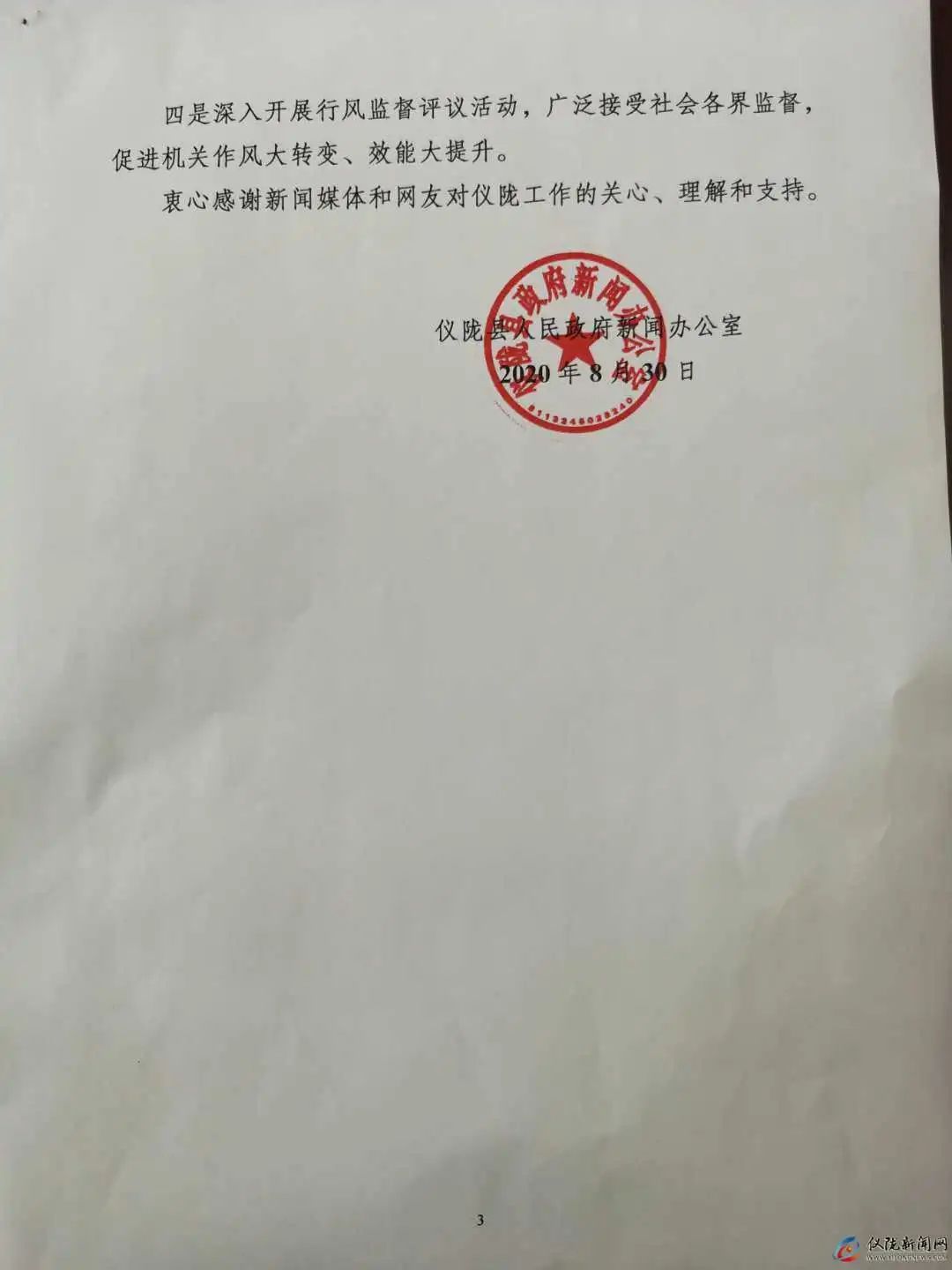 8月30日,就日前“儀隴縣人社局400多字官方回覆出現4個錯別字,連本單位名都寫錯”事件,南充市儀隴縣人民政府新聞辦公室發佈通報,通報該事件經過、處理情況和整改措施。
