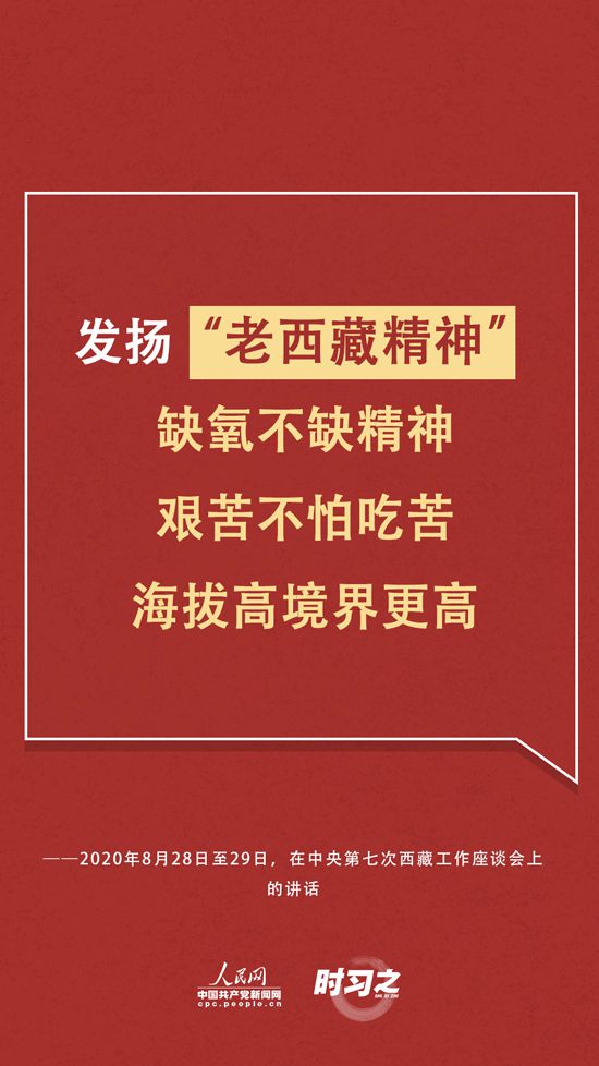 “缺氧不缺精神、艱苦不怕吃苦、海拔高境界更高,在工作中不斷增強責任感、使命感,增強能力、錘鍊作風。”習近平在座談會上再次為發揚“老西藏精神”作出註解。同時,習近平也提出要關心愛護西藏幹部職工,完善好、落實好工資收入、住房、就醫、子女入學、退休安置等各方面支持政策,重視健康保障工作。