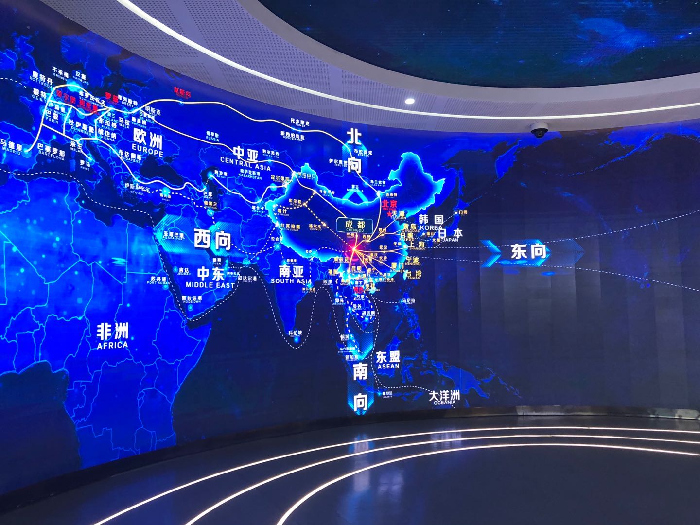 走進成都國際鐵路港展示中心,映入眼簾的藍色大屏幕展示了中歐班列(成都)連接的站點和詳細的線路。2013年4月,首班中歐班列(成都)從成都國際鐵路港始發,經過7年耕耘,已聯接境外波蘭羅茲、德國紐倫堡、荷蘭蒂爾堡等30個城市,欽州、上海等境內15個城市,打造7條國際鐵路通道和5條國際鐵海聯運通道。