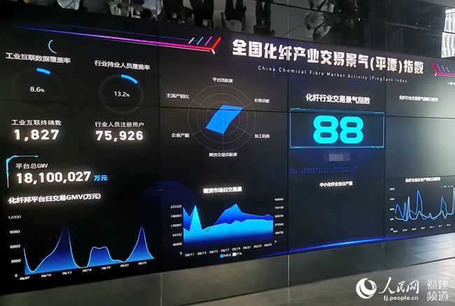 中小化纖企業日產量、化纖主流企業產銷比日趨勢、成本利潤分析、期貨市場交易量……在福建省平潭綜合實驗區一棟現代化寫字樓裏,通過可視化電子屏,化纖邦公司總經理葉興義正向訪客介紹“全國化纖產業交易景氣(平潭)指數”上的行業數據情況。