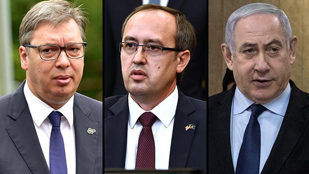 △從左至右:塞爾維亞總統、科索沃總理、以色列總理