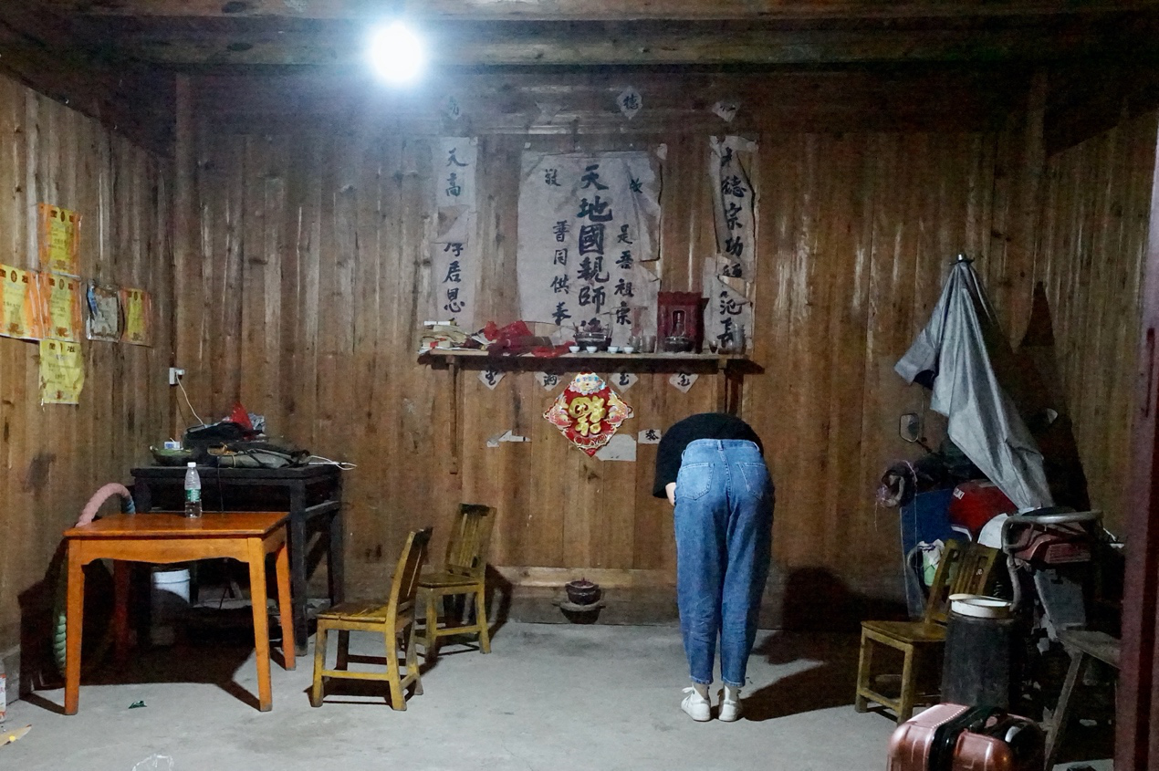 9月1日凌晨5點多,媽媽早早起牀幫她收拾好東西;租車從老家到城步縣城,從城步坐大巴到附近的懷化市,然後再乘坐高鐵到北京。臨行前,羅玉萍在老家客廳做了簡單的出發告別。