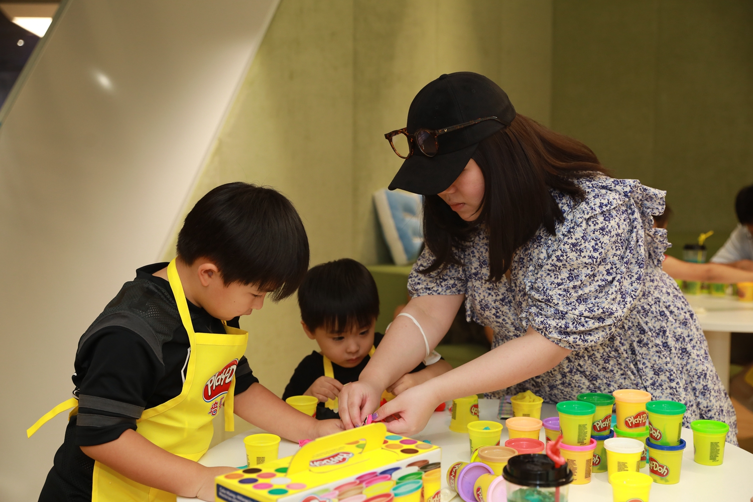 在R體驗中心玩耍的孩童與家長
