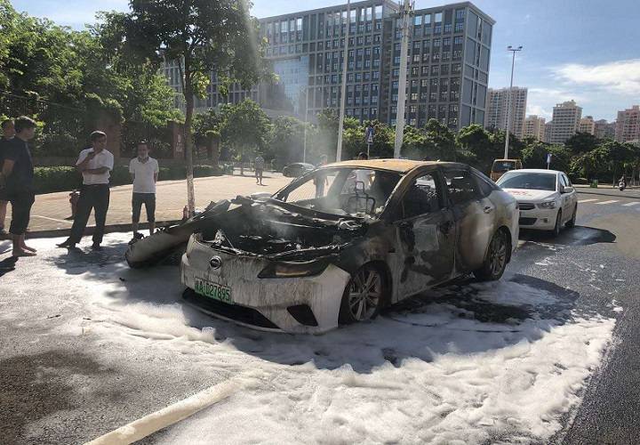 今年8月,一輛廣汽新能源埃安S在海南海口起火,車殼被燒成焦炭
