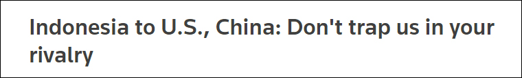 印尼外交部長蕾特諾8日在路透社採訪中説:“東盟和印尼希望告訴所有人,我們已準備好成為合作伙伴。我們不希望被捲入(中美)對抗(rivalry)。”