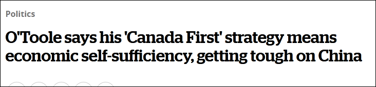當地時間9月8日,奧圖爾在加拿大廣播公司(CBC)《權力與政治》節目上,提出了“加拿大優先”的經濟戰略計劃,稱這意味着加拿大經濟自給自足。他表示,這一計劃將優先考慮工薪家庭,並在國際事務上將採取對華強硬態度。“我們必須把加拿大的工薪家庭擺在第一位。從貿易到應對疫情後的國內經濟,我都會這麼做”。