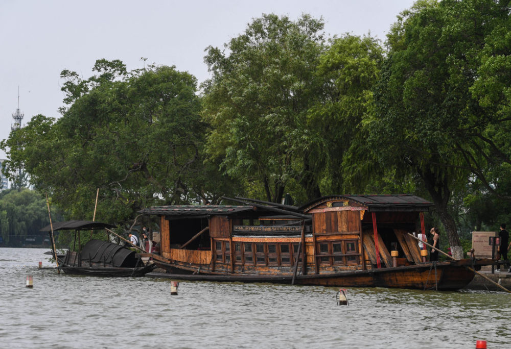 7月1日,嘉興南湖景區內停泊的中共一大紀念船。新華社記者 徐昱 攝