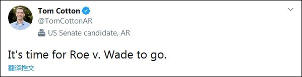 科頓則在提名後,在推特上稱,是時候讓“羅訴韋德案”(Roe v. Wade)走了。“羅訴韋德案”指的是1973年1月22日,美國聯邦高院最後以7比2的表決,確認婦女決定是否繼續懷孕的權利受到憲法上個人自主權和隱私權規定的保護,這等於承認美國墮胎的合法化。科頓的這條推特,同樣引來不少自由主義網民的攻擊。