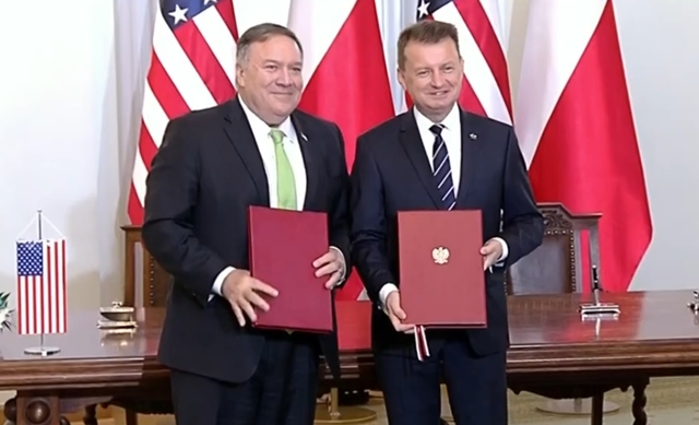 蓬佩奧和波蘭國防部長布瓦什恰克簽署《加強防務合作協議》 視頻截圖
