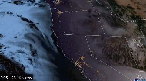 到了9月11日,濃煙還在太平洋擴散。《華盛頓郵報》氣候記者在推特上發了11日濃煙衞星圖,他寫道:“我以前不覺得西海岸大火的衞星圖像會讓人有多震驚,我錯了。”