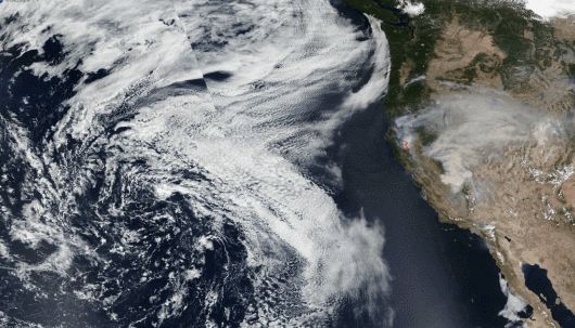 這張圖片就可以看到從海岸向太平洋傾瀉而下的濃煙,綿延600多英里(966千米)。