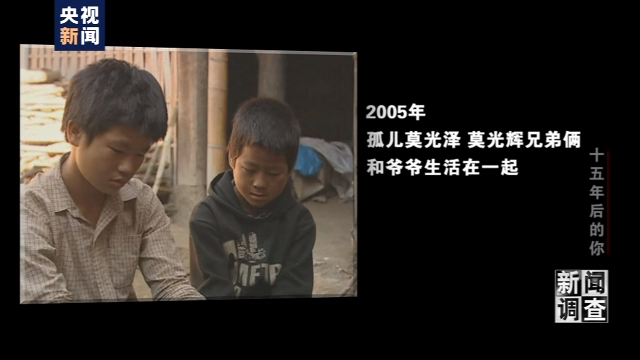 15年前,我國有近50萬農村孤兒,其中20萬孤兒的生活沒有得到制度性的保障。當時,《新聞調查》記者在雲南對孤兒的救助情況進行了調查。2005年,孤兒莫光澤、莫光輝兄弟倆,和爺爺生活在一起;孤兒金凹洪、金賀英、金老三兄妹獨立生活;孤兒代豔梅借養在鄰居家裏。