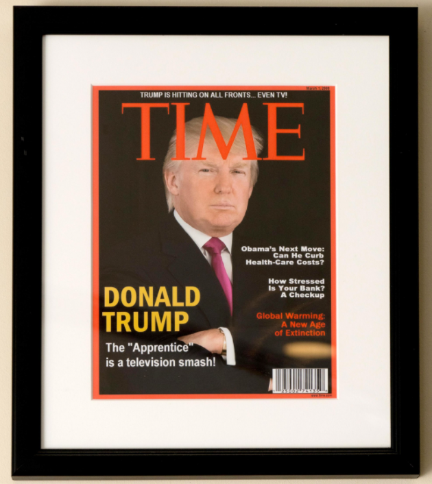據美國全國廣播公司(NBC)2017年報道,特朗普在自己名下的邁阿密國家高爾夫球場的牆上,懸掛以他為封面人物的《時代》雜誌,後被雜誌社“闢謠”稱,我們並沒有選他作為“年度人物”。這幅封面事後被證明也是偽造的。