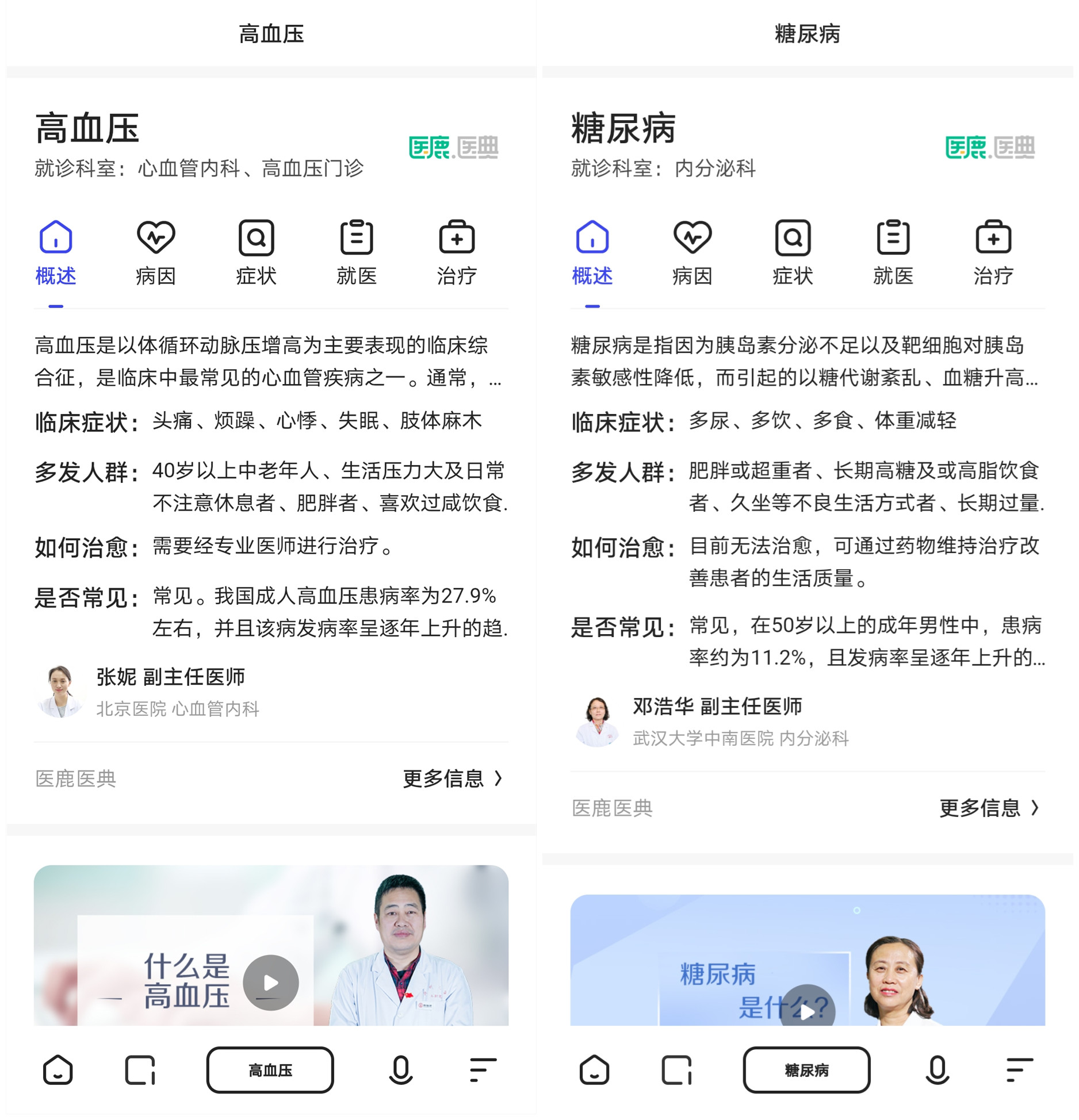 為滿足用户對常見病症的查詢需求,夸克引入醫鹿醫典的權威專業內容,提供病症概述、病因分析、典型症狀、就醫指南、治療原則、日常護理、疾病預防等全方位的精準查詢和自診信息。以AI技術為服務升級核心,將海量龐雜的醫療內容和用户的多元化需求進行匹配。