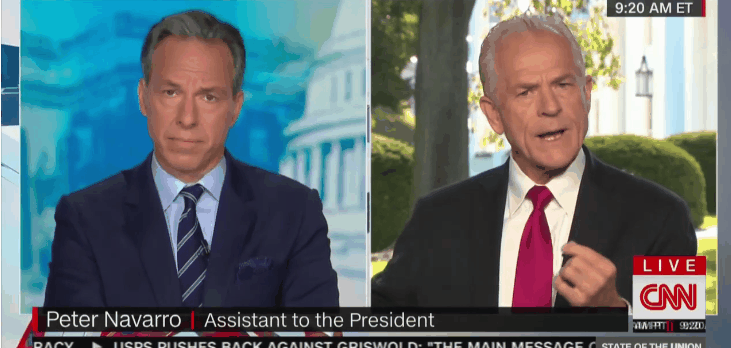 當天,CNN的“國情諮文”(SOTU)節目就美國總統特朗普近期被曝淡化新冠疫情的新聞,邀請納瓦羅前來評論。本月9日,因調查“水門事件”而聞名的記者伍德沃德(Woodward)在新書中爆料,特朗普早在今年2月就知道新冠病毒的危險性,但他仍淡化疫情,誤導美國民眾。