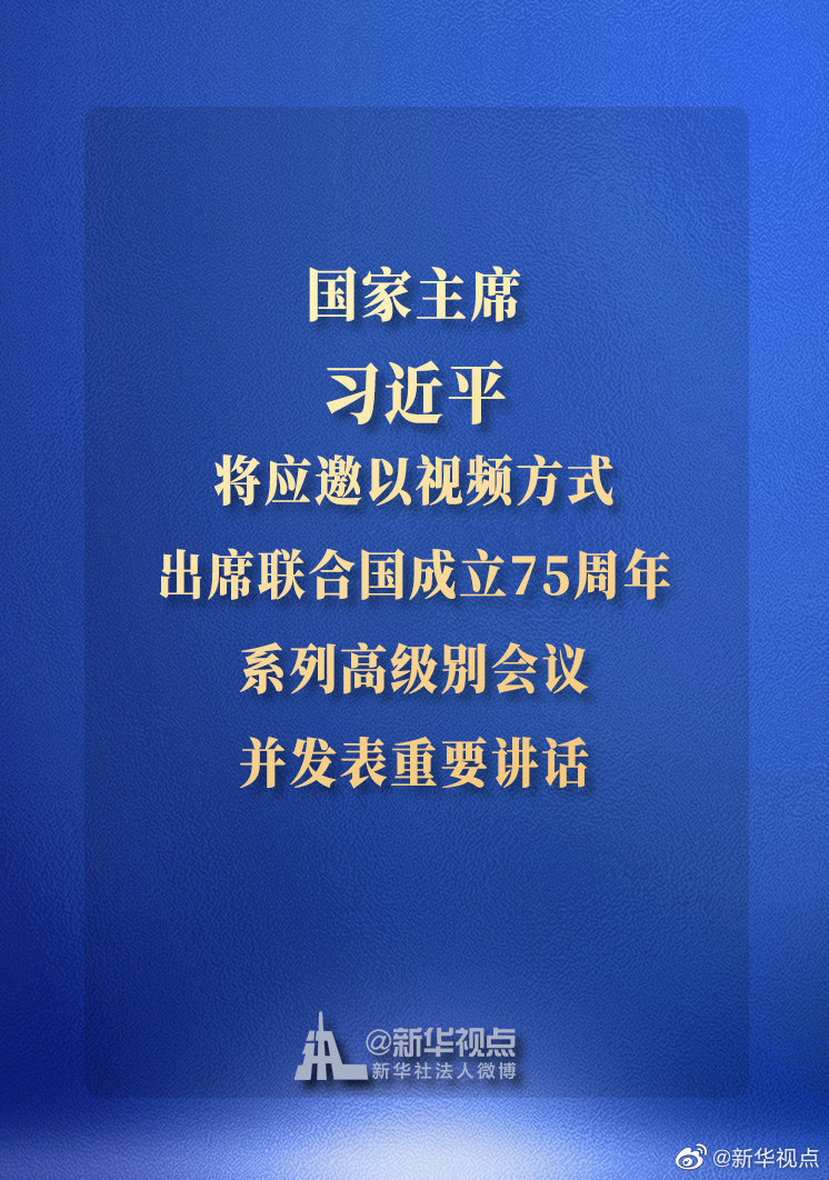 習近平將應邀以視頻方式出席聯合國成立75週年系列高級別會議並發表重要講話 2020-09-15 外交部發言人華春瑩15日宣佈:國家主席習近平將應邀以視頻方式出席聯合國成立75週年系列高級別會議並發表重要講話。