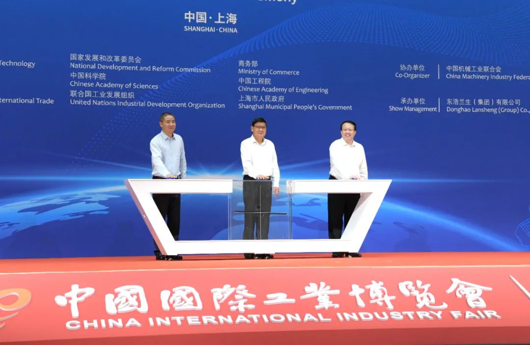 中共中央政治局委員、上海市委書記李強出席開幕式暨頒獎儀式,中國工程院院長李曉紅,上海市委副書記、市長龔正,工業和信息化部副部長辛國斌致辭並共同開啓第二十二屆中國國際工業博覽會。