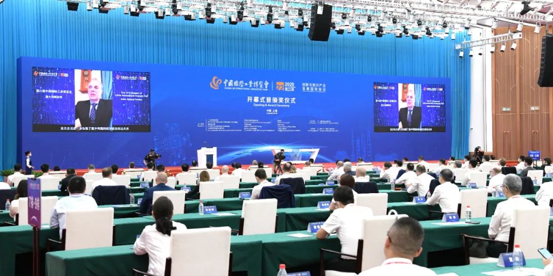 意大利駐華大使方瀾意作視頻致辭。中國工程院副院長何華武為11家獲獎單位頒發中國國際工業博覽會大獎(含特別大獎)和國家館獎。