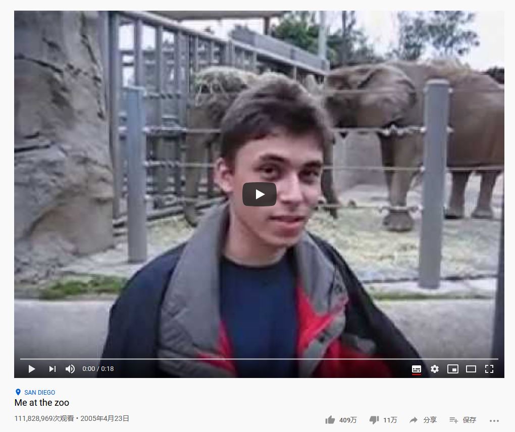 《我在動物園》是YouTube上第一個視頻,全長18秒