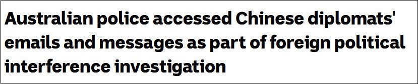 ABC:作為調查“外國政治干預”的一部分,澳大利亞警方翻閲了中國外交官的電子郵件和信息