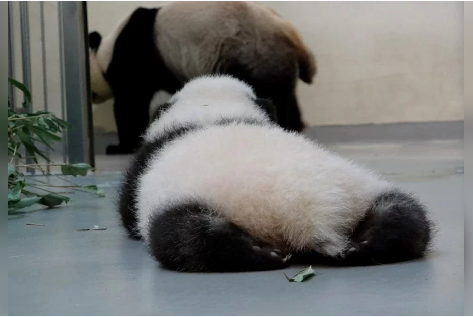 贈台大熊貓“圓圓”待膩產房,趁夜帶寶寶出門“宿營”