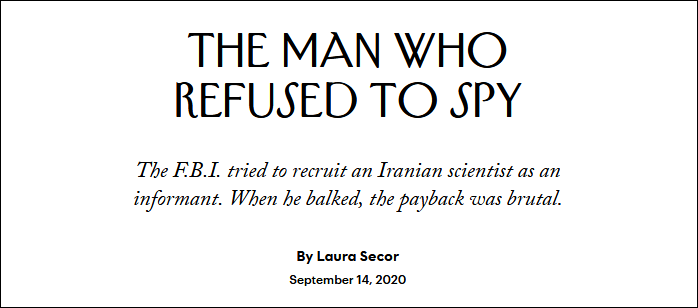 【文/觀察者網 熊超然】9月14日,美國著名雜誌《紐約客》(The New Yorker)刊登了一篇長篇文章,其中介紹了一名伊朗科學家西魯斯·阿斯加里(Sirous Asgari),他於2017年被美國政府逮捕,最終於今年通過美伊兩國“人質交換”而重獲自由。