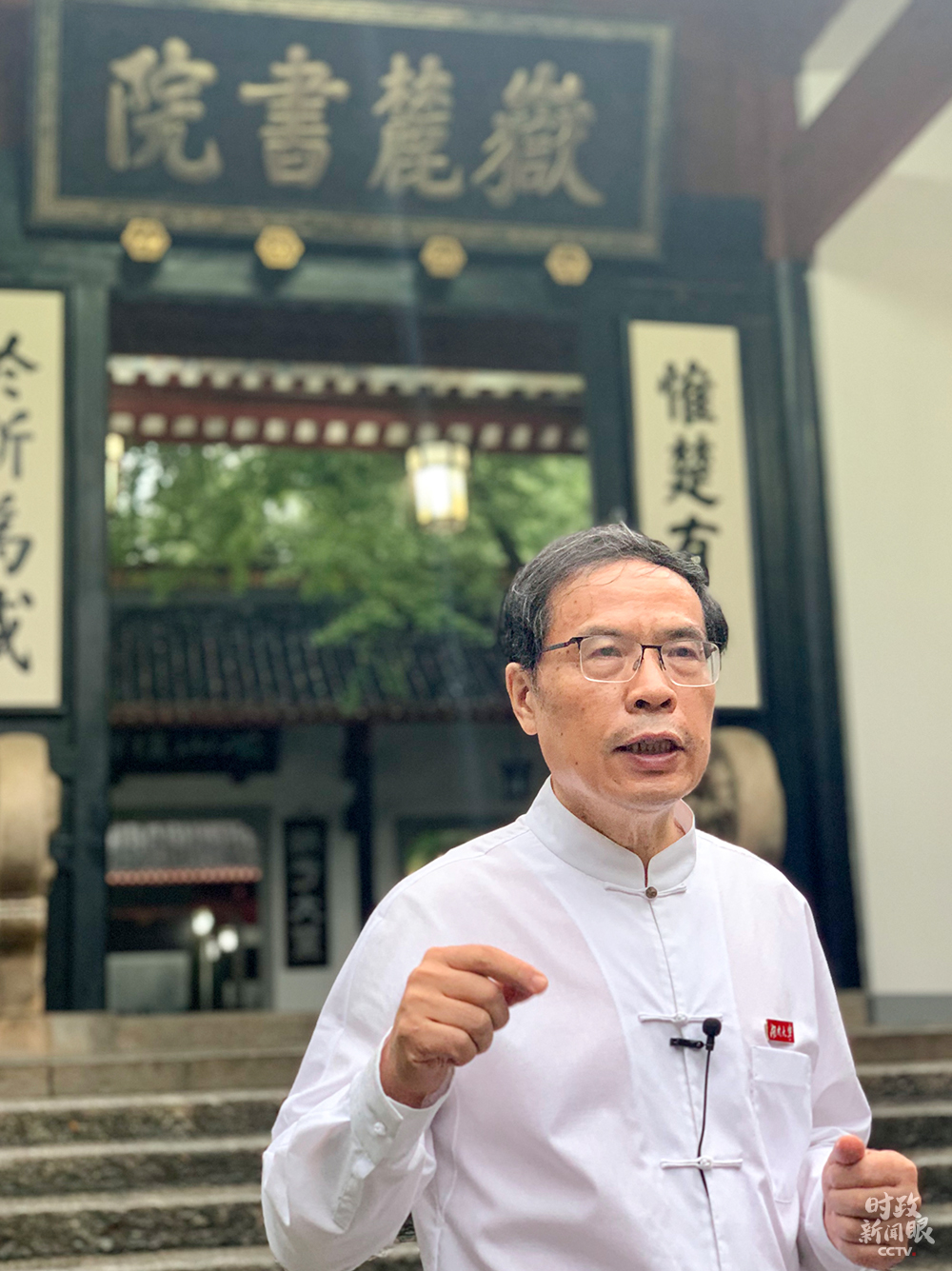 △當天給總書記作介紹的是曾任嶽麓書院院長20多年的朱漢民教授。(總枱央視記者盧心雨拍攝)