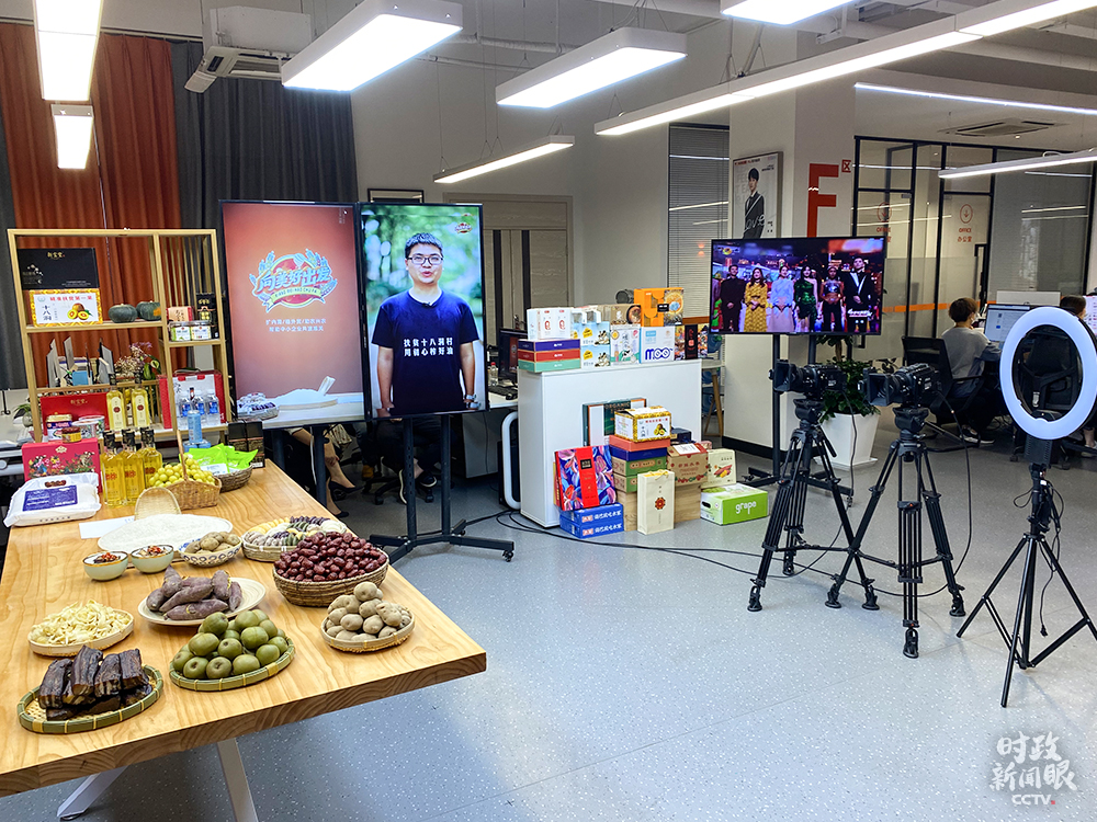 △園區正準備做扶貧農產品銷售直播。(總枱央視記者郭曉龍拍攝)